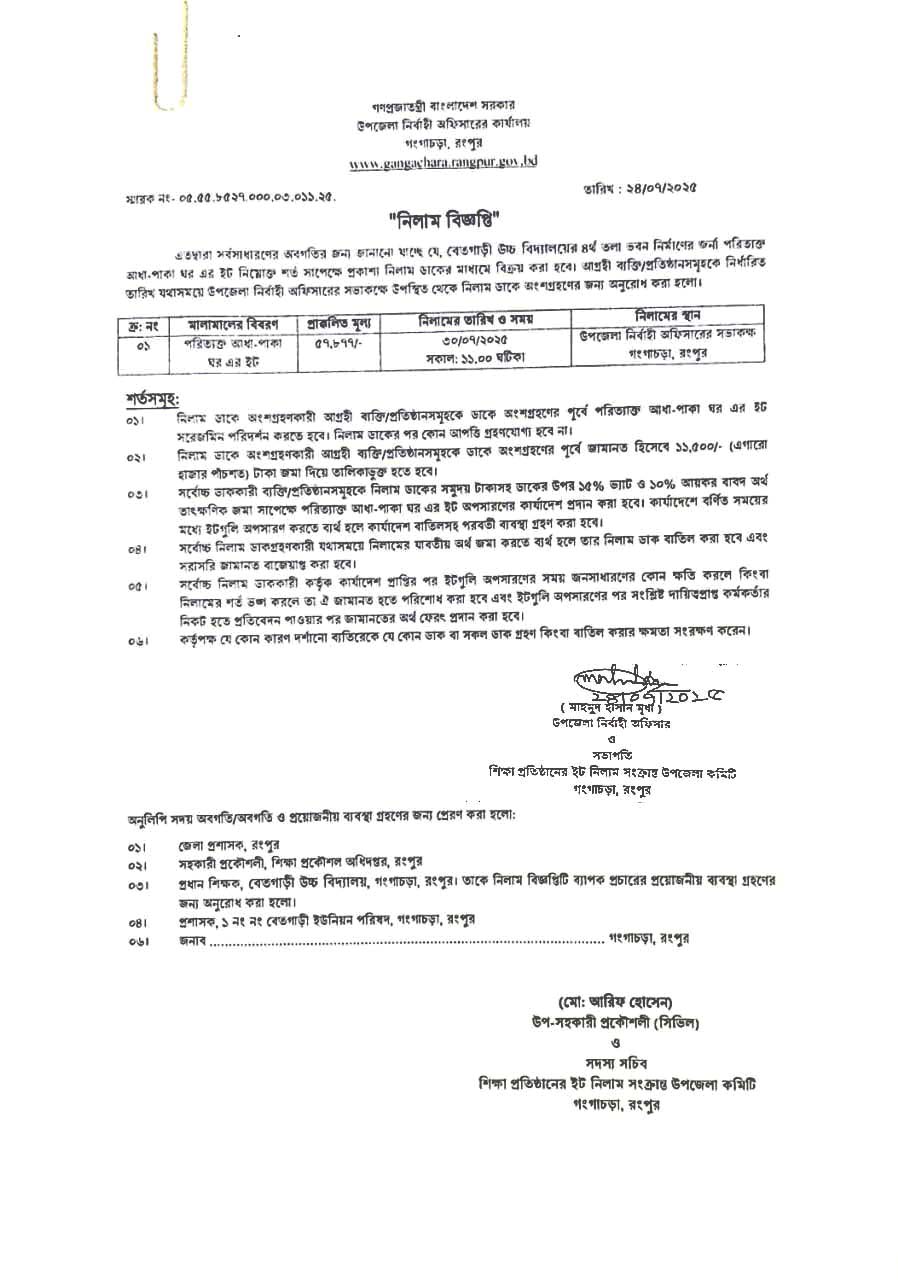 | 3 | নিলাম বিজ্ঞপ্তি, বেতগাড়ী উচ্চ বিদ্যালয় । |